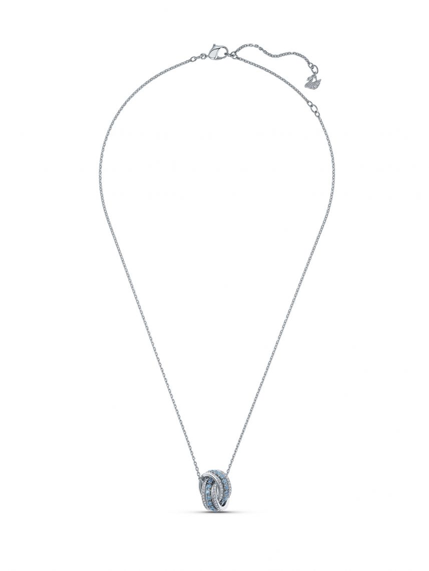 Part of a special collection celebrating our 125th anniversary, this Swarovski pendant reworks proven designs with a modern twist. Two intricate ring elements entwined with each other sparkle with light blue and sparkling white stones. The stones' color c