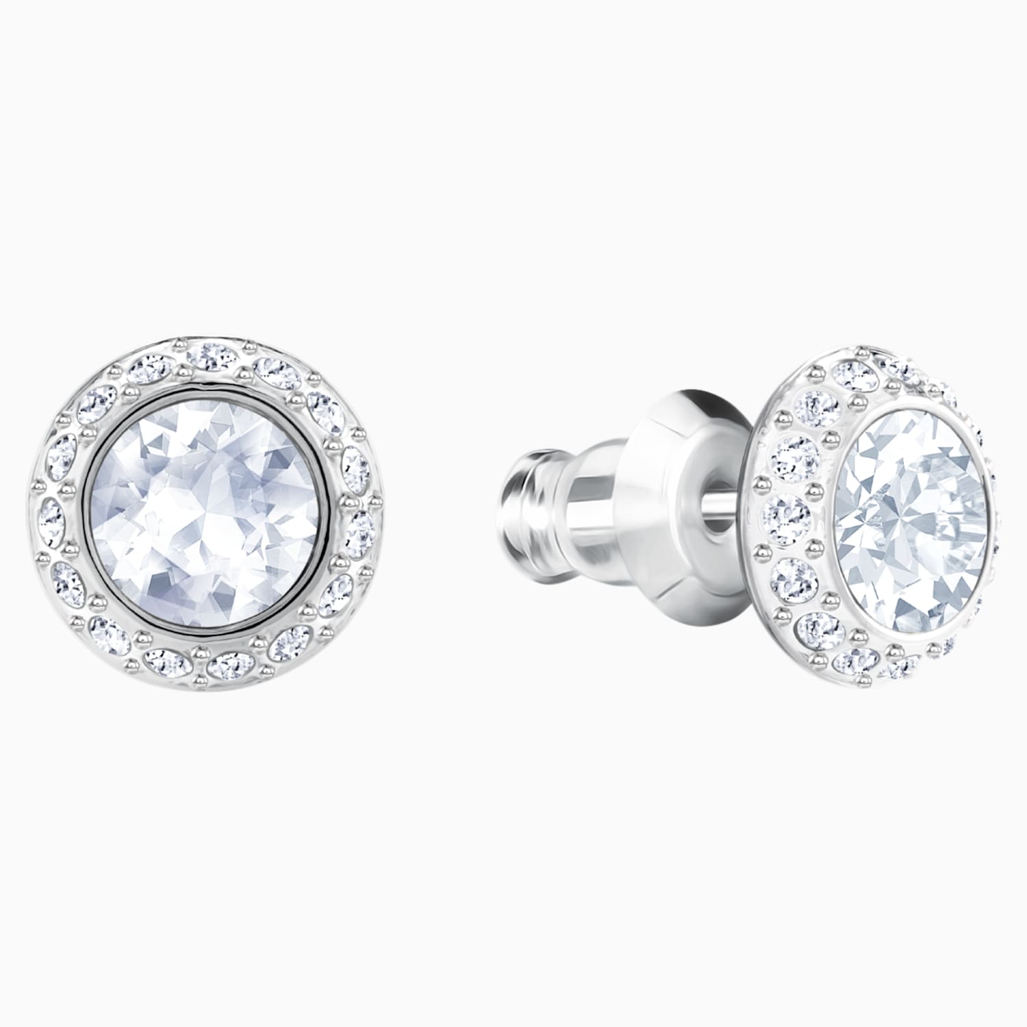 A classic pair of earrings can enhance just about any outfit. This pair of rhodium-plated button pierced earrings does just that! Each piece displays a single clear crystal chaton framed in clear crystal pavé, creating a beautiful sparkle. The earrings come as a pair.