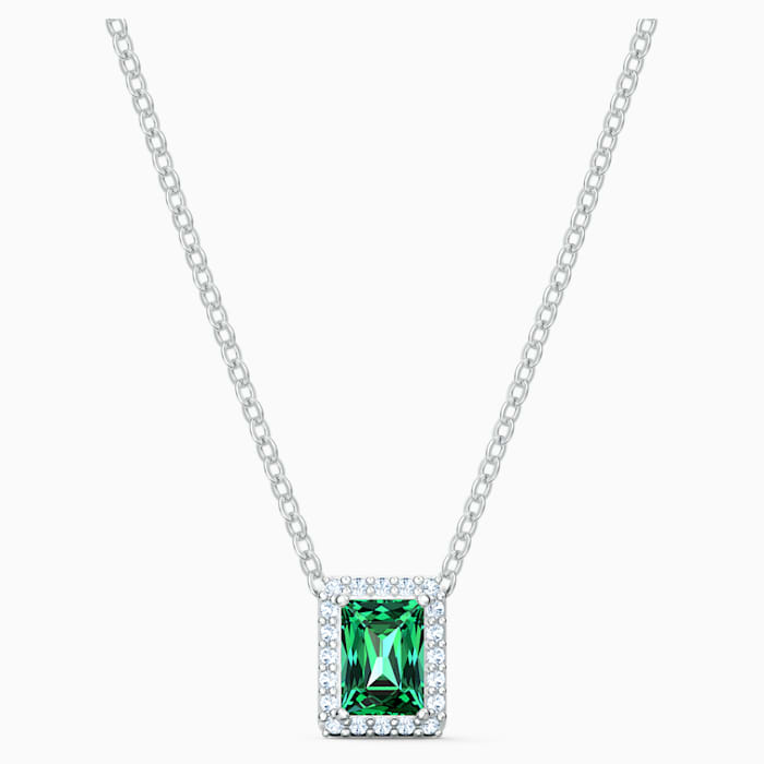 This beautiful Swarovski necklace is a timeless classic. It features a single green, rectangular stone which adorns a shimmering chain and is surrounded by sparkling pavé. Its simple yet elegant design makes it a great choice to dress up everyday looks. Combine it with matching pieces of jewelry for a sparkling ensemble. A beautiful gift for someone close to you.
