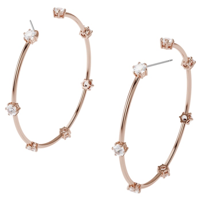 This pair of minimalist hoop earrings are designed with a touch of stardust, featuring a rose gold-tone plated frame accented with round, brilliant cut stones arranged to mimic constellations. Easy and elegant, these earrings can be worn for either either day or night; either alone, or with other jewelery from the Constella family for a modern take on classic solitaire jewelery. These earrings are part of the Constella family, designed by Creative Director Giovanna Engelbert for Collection I