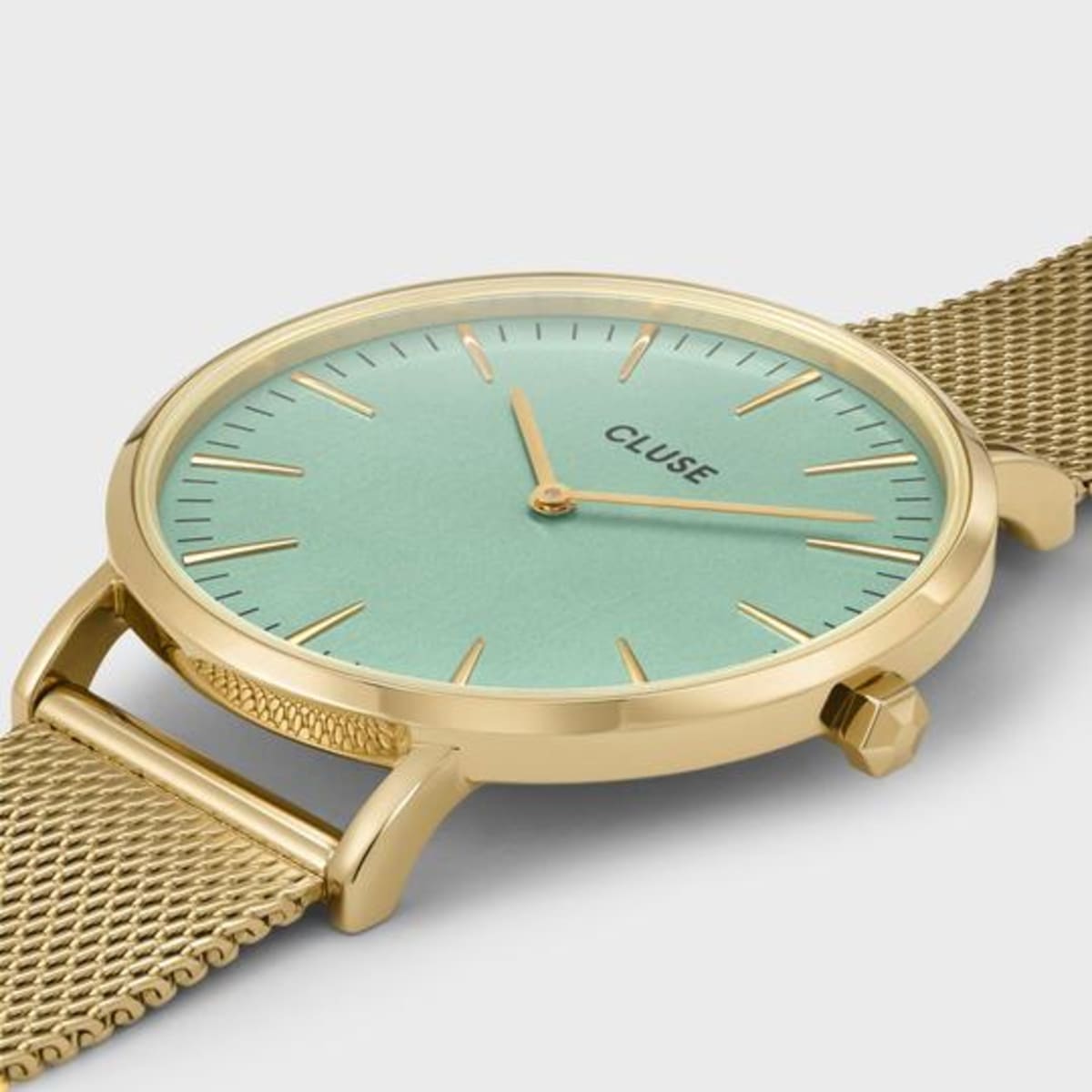 Modern minimalism, maximum chic. If you love to add a bit of playfulness to your style, this Boho Chic watch is your new best friend. This gold coloured watch, with a special stone green brushed dial, will make you stand out from the crowd in a fashionable manner. Bold in size, but always graceful. Even on a delicate wrist. With its stainless steel case and mesh strap, it's built to last. As with all Boho Chic watches, you can easily interchange the strap with any 18 mm CLUSE watch strap.