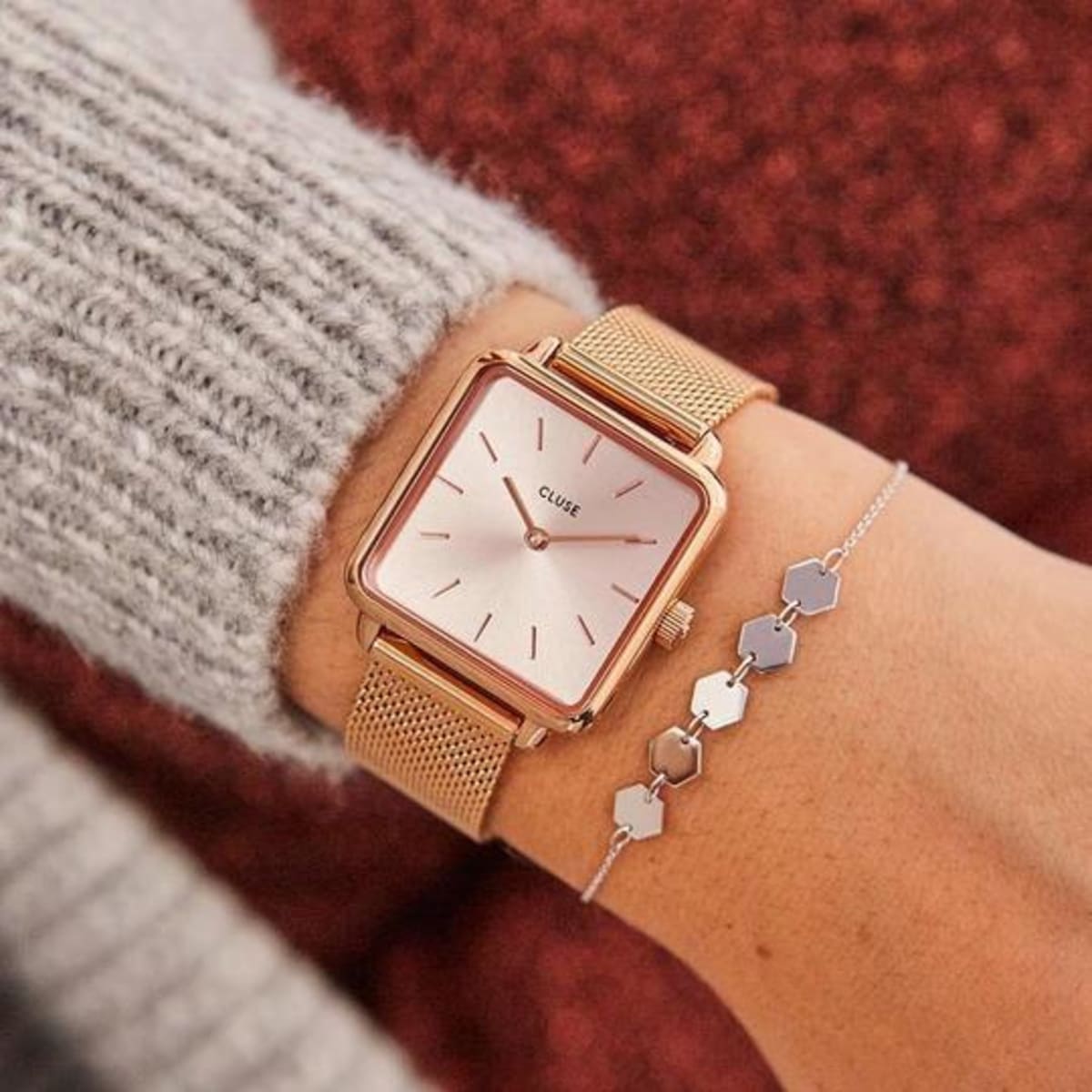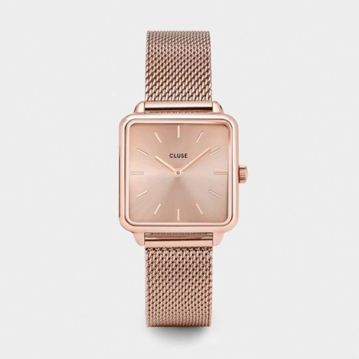 With a square case, rounded edges and clean, uncluttered face, our La Tétragone collection is a play on line, shape and form. Indulge with our full rose gold colour La Tétragone, a contemporary silhouette contradicted by a soft, feminine finish. A hint of vintage on an otherwise modern design. As with all our watches in the La Tétragone collection, the straps of this watch can be interchanged with any 16 mm CLUSE watch strap.