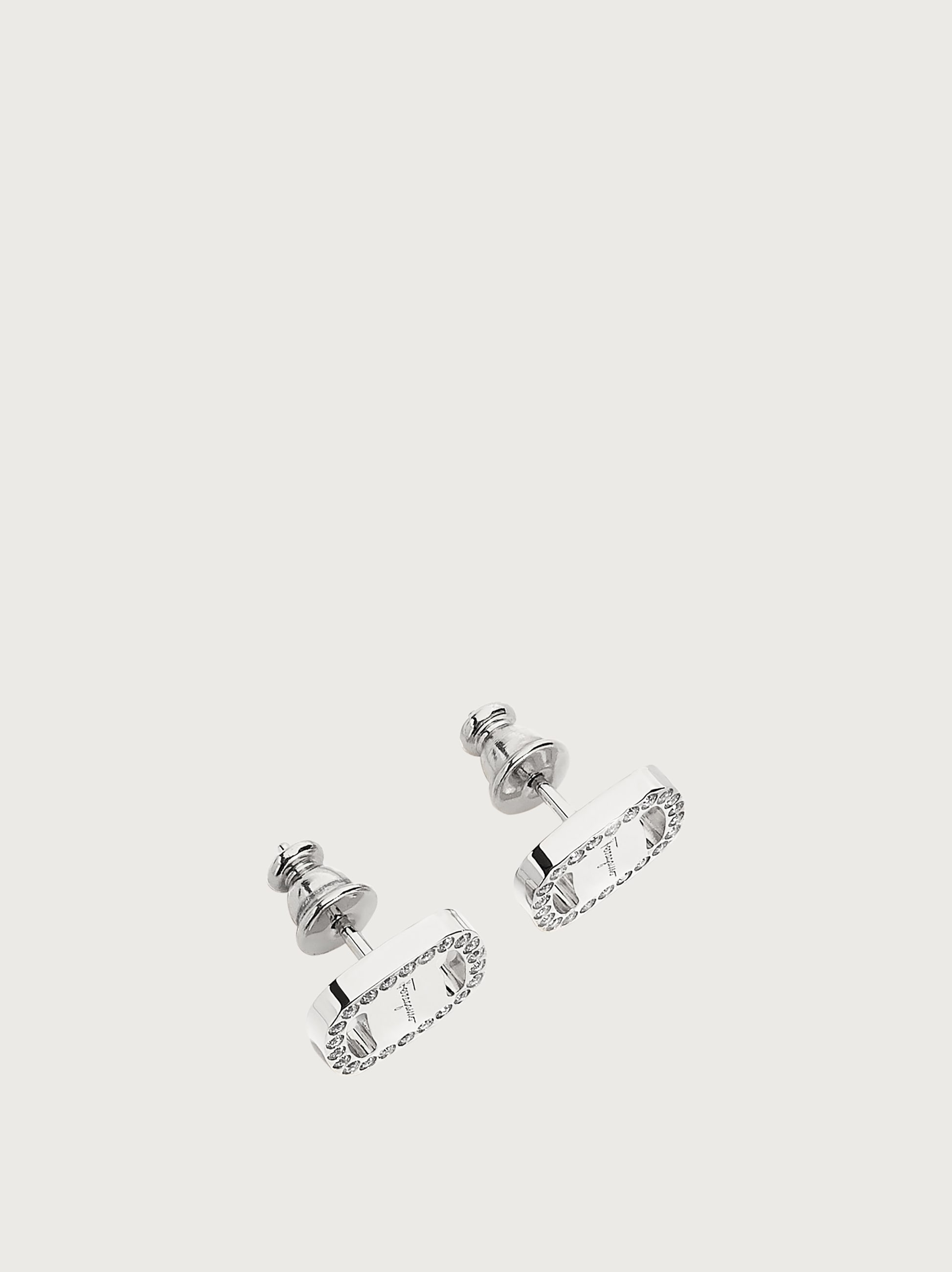 The iconic Vara bow becomes a buckle stud earring, with a small engraved signature. A touch of fashion verve for young and contemporary looks. Height 10 mm, width 8 mm. Composition: glass and brass Made In ITALY